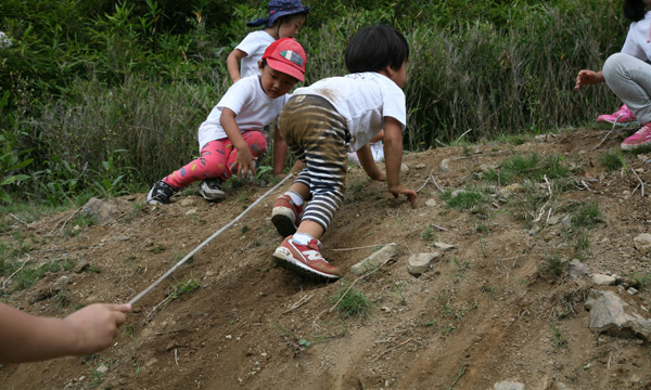 ☆ 外遊びや散歩、山歩きをたくさん取り入れ、自然に働きかけて遊ぶ。