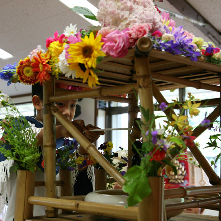 春は、園庭でお花見、摘み草。まわりに木が多いので、野鳥もいっぱい。